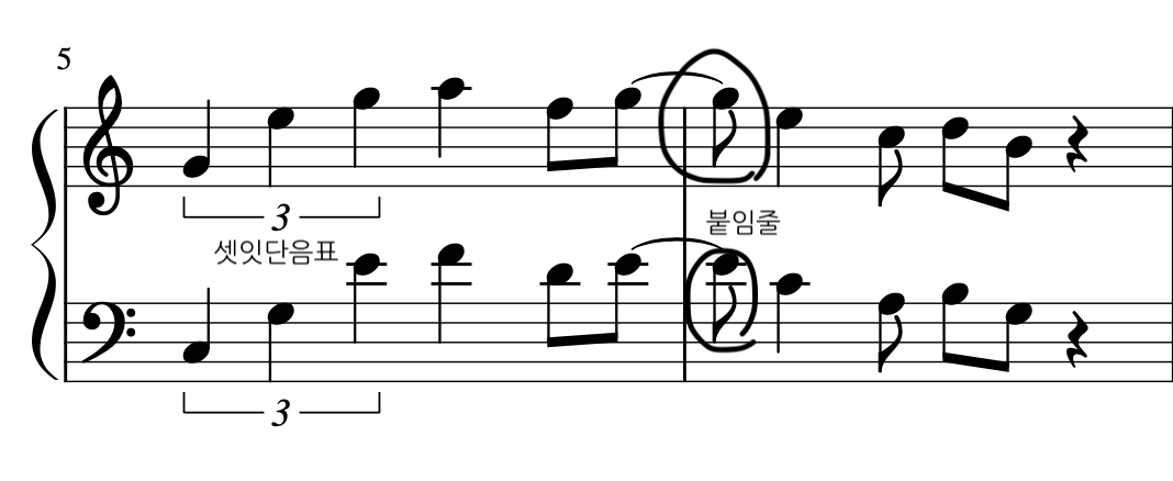 프린터 한 악보에 개인적으로 붙임줄 표시를 하시면 더욱 쉬울 거예요 :)