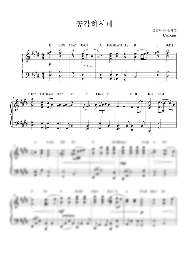 피아노 연주 부분은 반주로 함꼐 연주가 가능하도록 편곡해 보았습니다
