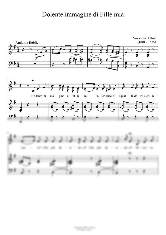 V. Bellini - Dolente immagine di Fille mia (피아노 3단, Em Key) by noten(노튼)