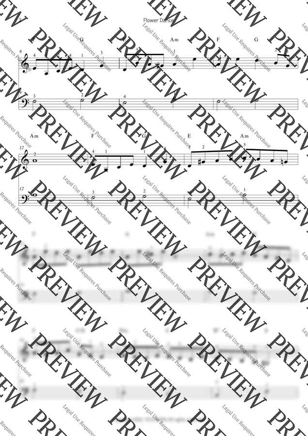 플라워댄스의 쉬운 버전, 손가락번호가 기입되어 있습니다.