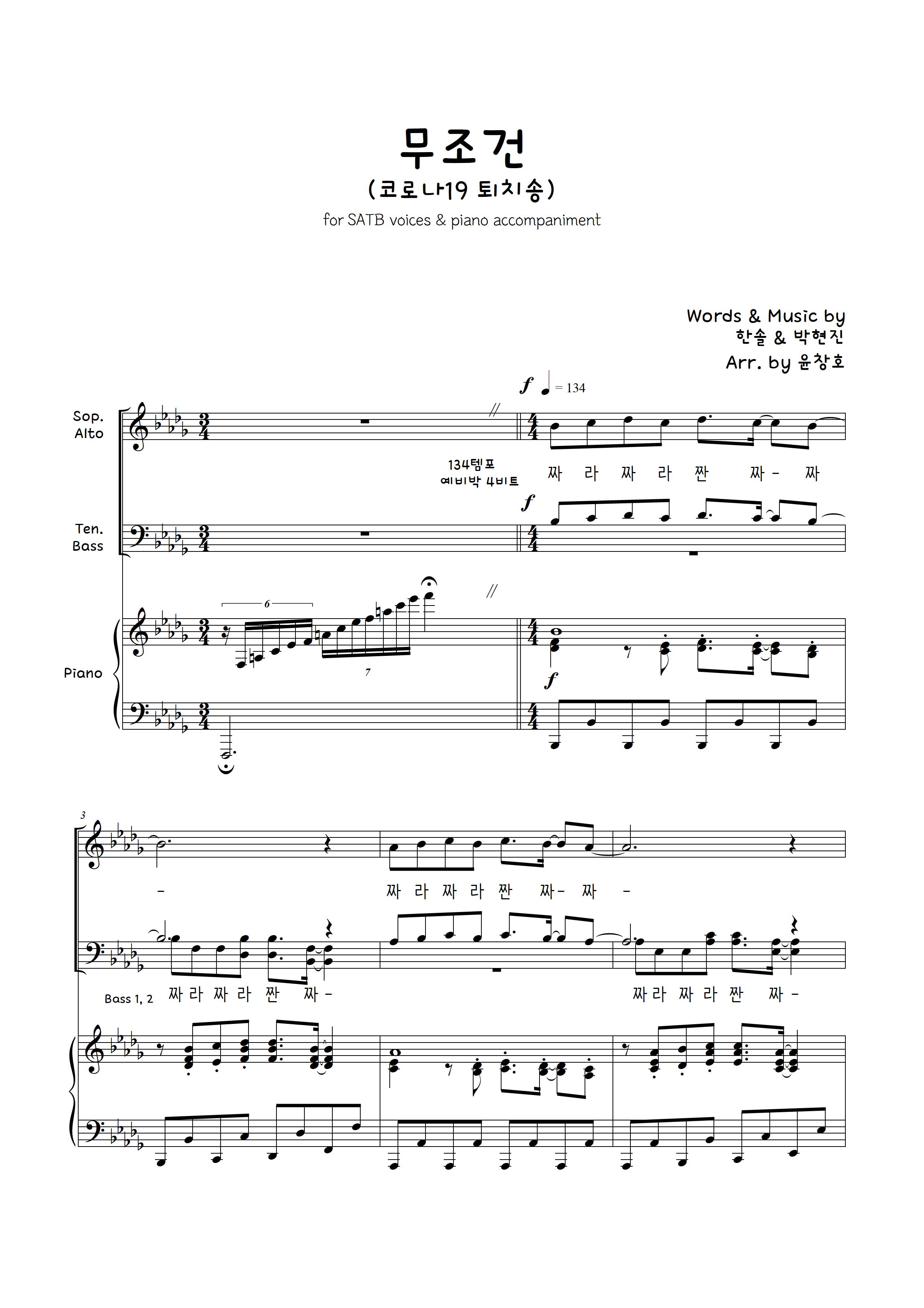 박현진 - 무조건 (코로나19 퇴치송) (4부 합창 버전) by 윤창호