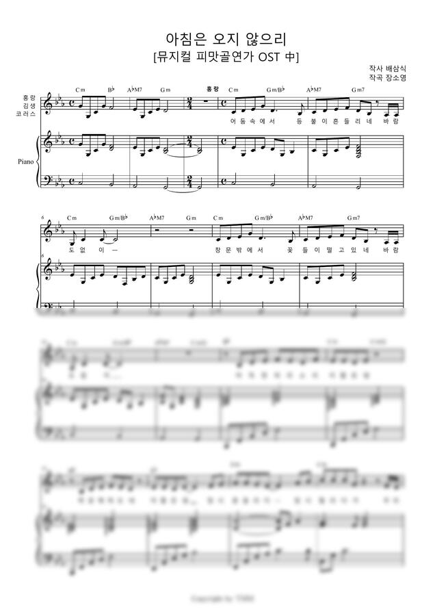뮤지컬 <피맛골연가> OST의 피아노 리덕션 악보입니다.