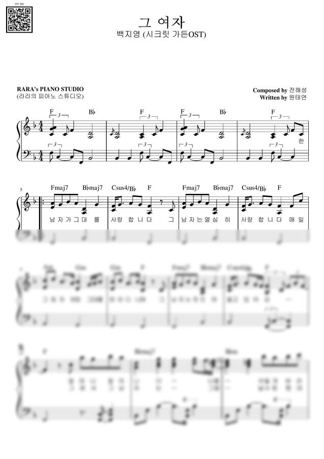 📢다른 버젼의 악보를 원하시는 분들은 아래를 클릭해주세요.