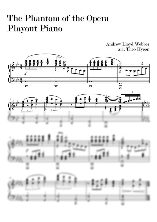 오페라의 유령 커튼콜 음악(Playout)을 피아노로 연주할 수 있는 악보입니다.