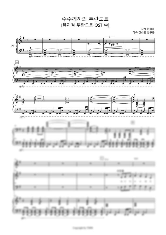 뮤지컬 <투란도트> OST의 피아노 리덕션 악보입니다.