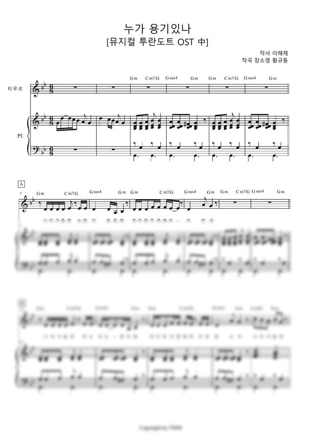 뮤지컬 <투란도트> OST의 피아노 리덕션 악보입니다.