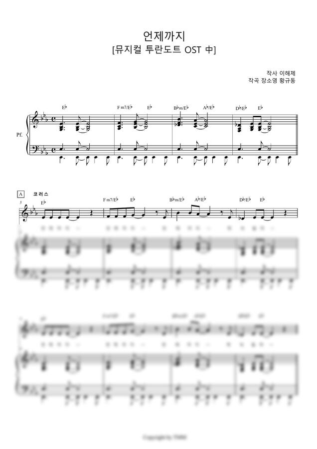 뮤지컬 <투란도트> OST의 피아노 리덕션 악보입니다.