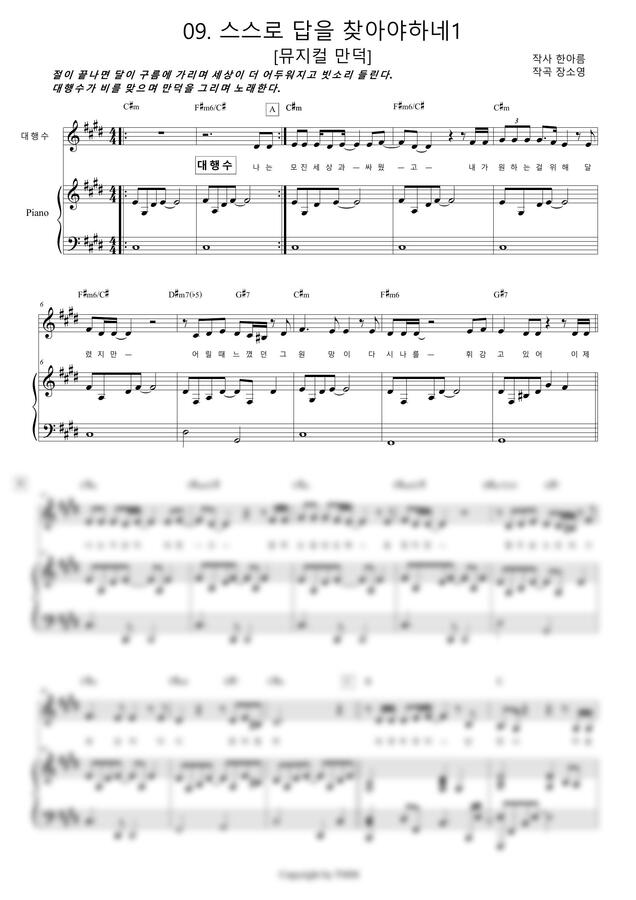 뮤지컬 <만덕> 의 공연용 피아노 리덕션 악보입니다.