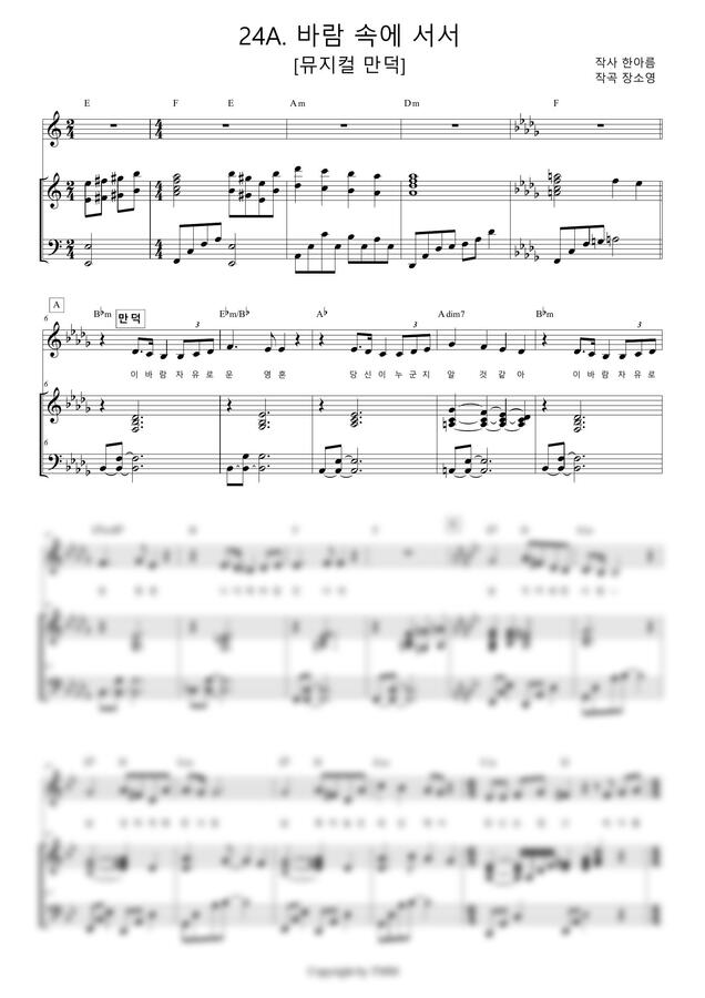 만덕 OST - 24. 바람 속에 서서 (공연용 악보) by Soyoung Jang