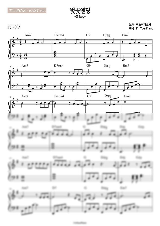버스커 버스커 - 벚꽃엔딩 (원키,쉬운키,쉬운편) by I'mYourPiano