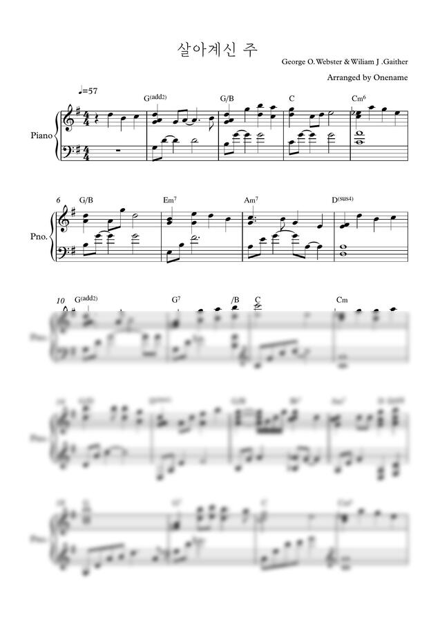 오늘은 가장 요청이 많은 것 중 살아계신 주 악보인데요