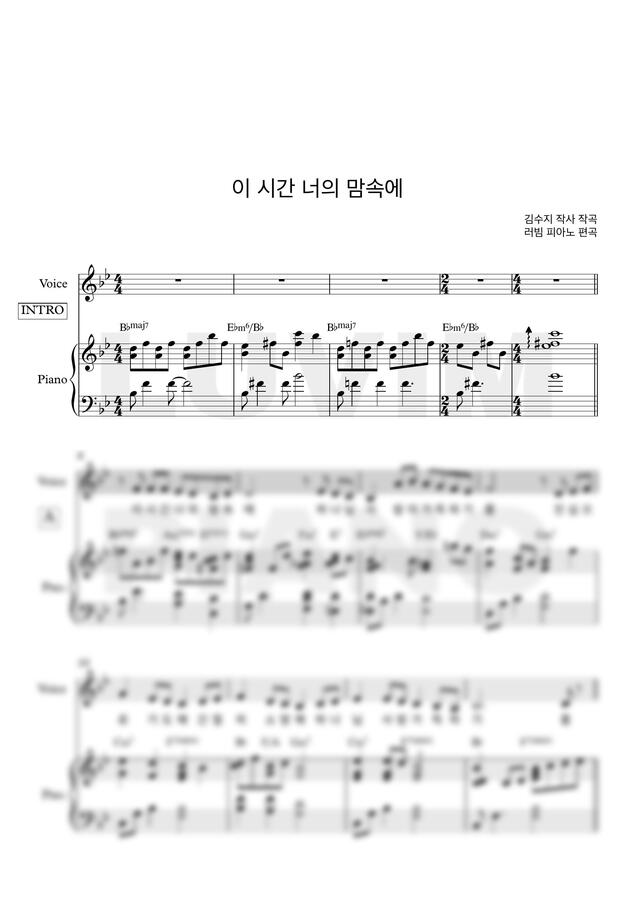 김수지 - 이 시간 너의 맘속에 (Bbkey 3단악보) by 러빔피아노1