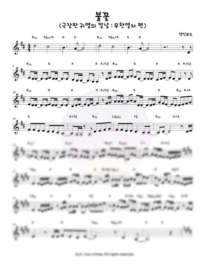 귀멸의 칼날 ost 불꽃 (극장판 무한열차편) 멜로디+코드 악보 입니다.