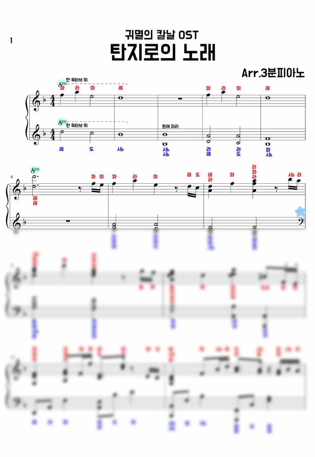 귀멸의 칼날 OST - 竈門炭治郎のうた (탄지로의 노래) (계이름악보만) by 3분피아노1