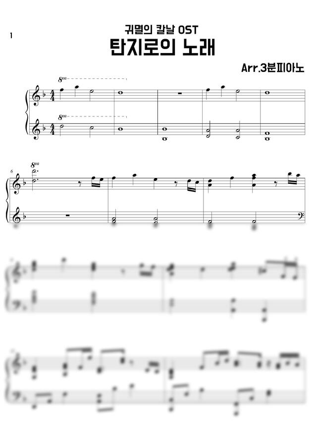 귀멸의 칼날 OST - 竈門炭治郎のうた (탄지로의 노래) (계이름악보,일반악보) by 3분피아노