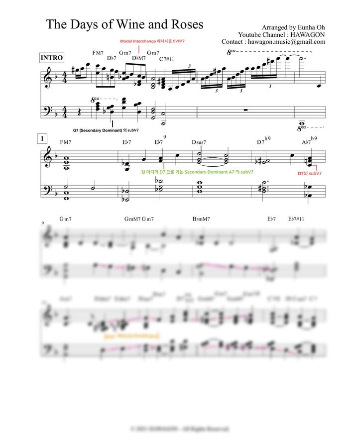 텐션을 포함한 코드표기, 음악이론적인 표기 또한 보실 수 있으니, 악보가 필요하신 분들은 악보구매링크를 이용해 주세요 :)