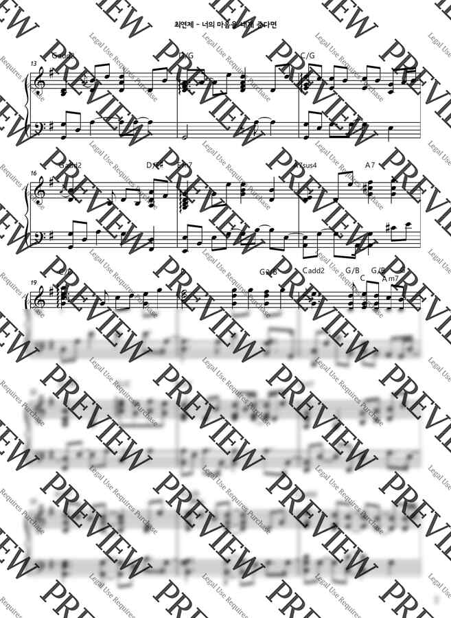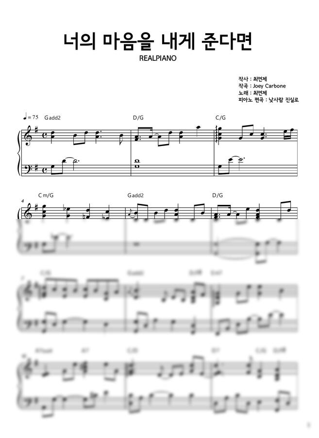 최연제 - 너의 마음을 내게 준다면 피아노 악보입니다.