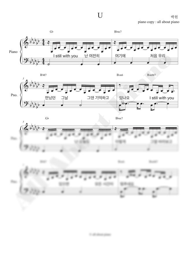 백현 - U (어느날 우리집 현관으로 멸망이 들어왔다ost) by all about piano