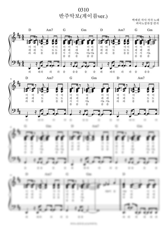 코드와 가사는 포함되지 않으므로 기존 악보는 아래 링크를 참고해주세요