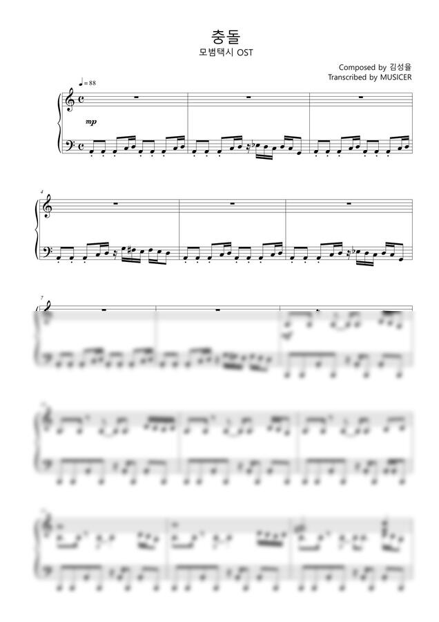 드라마를 틀어놓고 채보하여 만든 악보이므로, 풀 음원과 구성이 다를 수 있습니다.