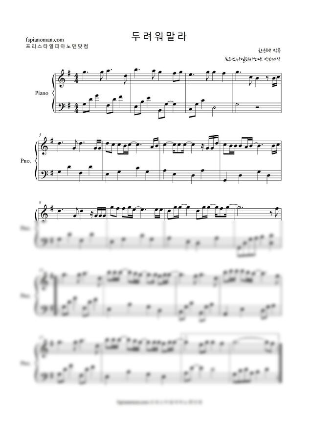 한은택 - 두려워말라 (쉬운 악보) by 프리스타일피아노맨닷컴1