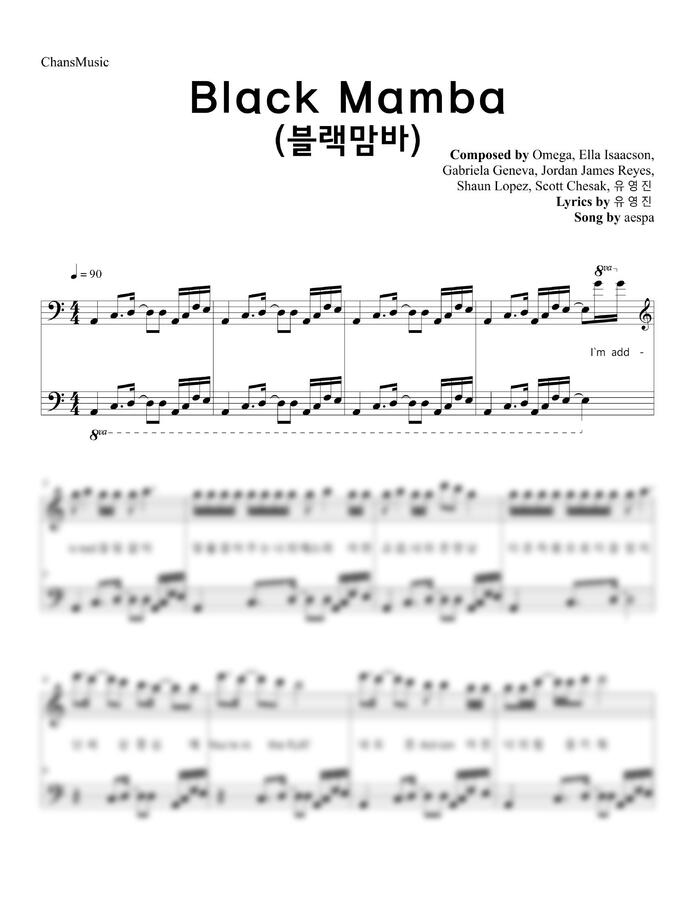aespa (에스파) - Black Mamba (다장조 쉬운코드) by 찬스뮤직 1p 미리보기