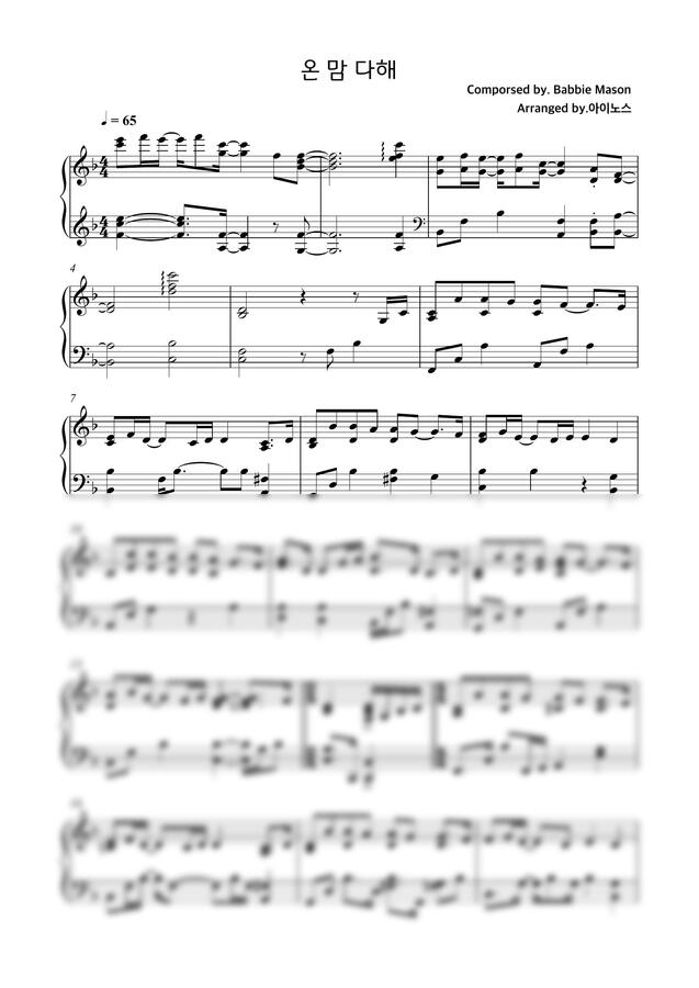 - 아티스트 '아이노스'가 연주한 곡 중 문의가 빗발쳤던 온 맘 다해 악보 입니다. (장난 아니였어용)