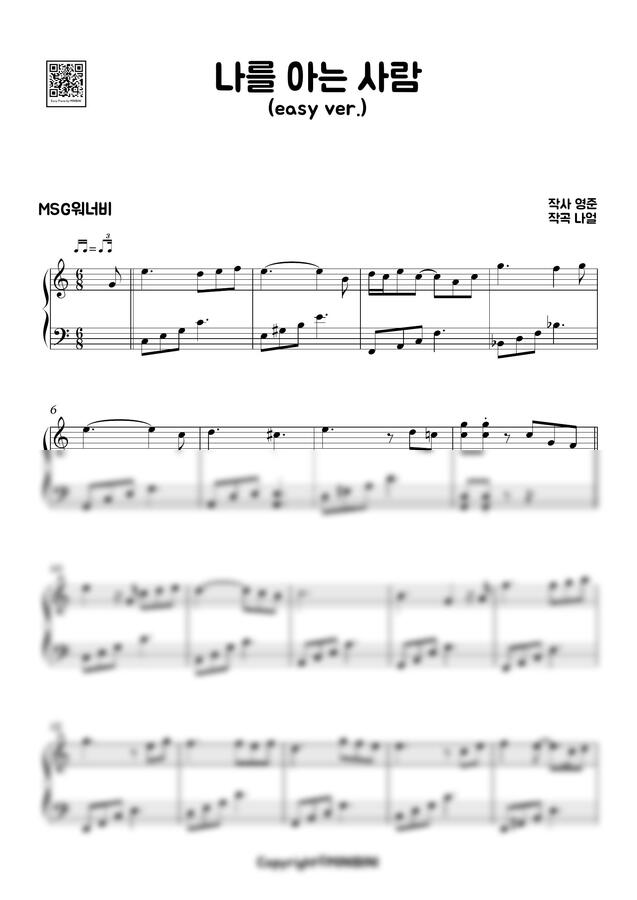 MSG워너비 (정상동기) - 나를 아는 사람 (쉬운 악보) by MINIBINI