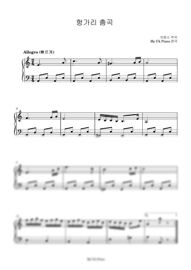J. Brahms (브람스) - 헝가리 춤곡 (쉬운악보) by My Uk Piano