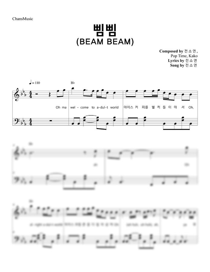 전소연 - 삠삠 (BEAM BEAM) (가사, 쉬운 악보) by 찬스뮤직
