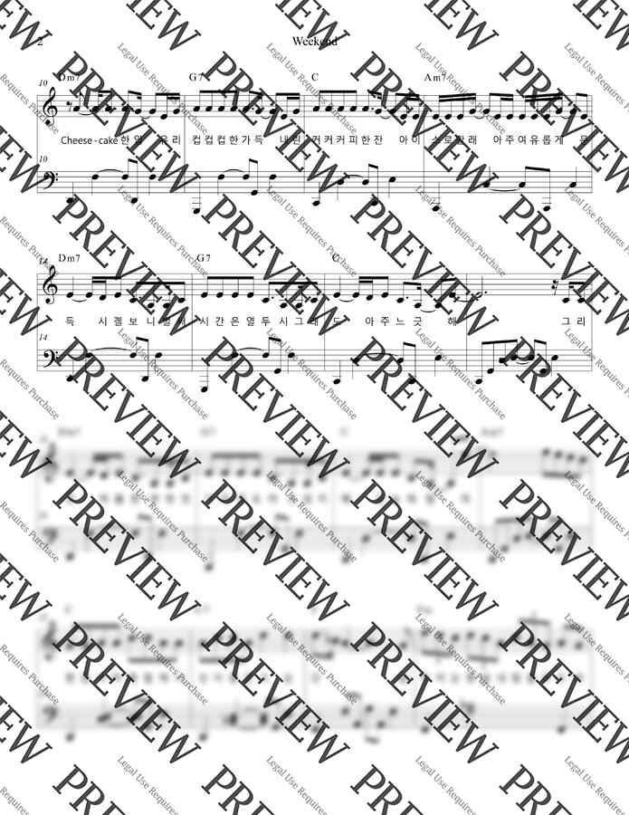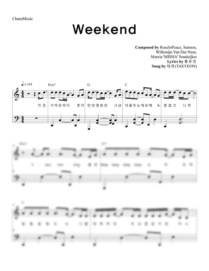 태연의 Weekend 피아노 커버 '다장조' 악보입니다^^✅해당 영상에서 다장조(C key)로 조옮김 한 악보입니다❗