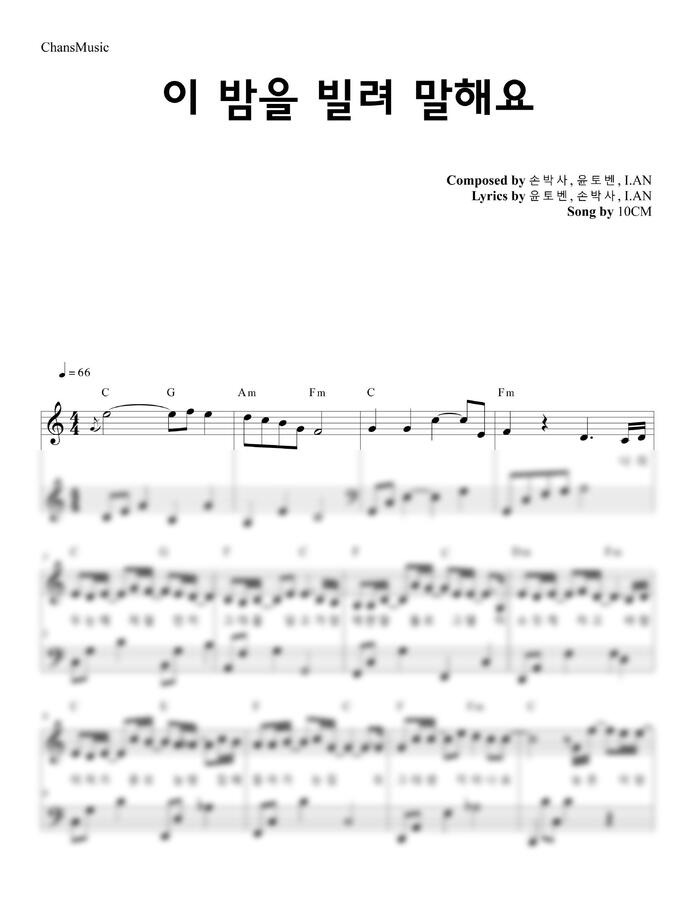 10센치의 이 밤을 빌려 말해요 피아노 커버 매우 쉬운 악보입니다^^