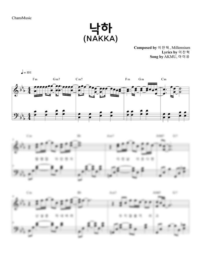 악뮤의 낙하 피아노 커버 악보입니다^^