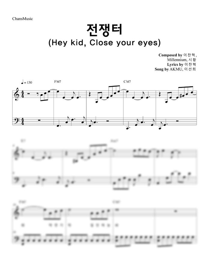 악뮤의 전쟁터 피아노 커버 악보 쉬운 버전입니다^^