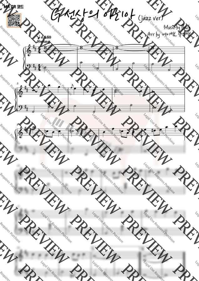 지난해 올렸던 슈베르트, 베토벤 재즈 버젼 악보가 많은 사랑을 받아서, 이번에는 조금 난이도 쉽게 바로크 작곡가 '바흐'의 곡을 스윙곡으로 쉽게 편곡해보았습니다. 악보에 있는 QR코드 MR과 연주하시면 보다 풍성한 사운드로 연주가 가능합니다~ ^^