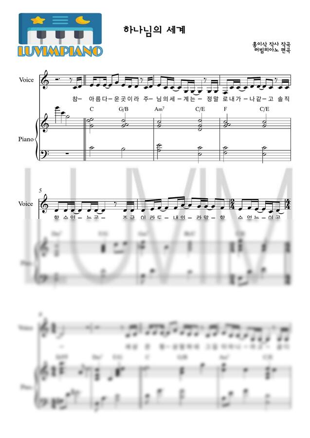 홍이삭 - 하나님의 세계 (C key) by 러빔피아노