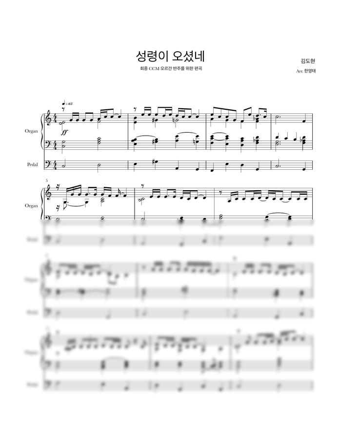 김도현 - 성령이 오셨네 (오르간 반주 악보) by 한영태