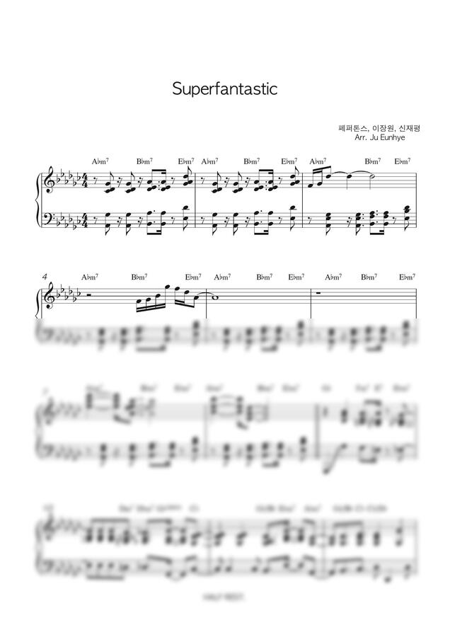 * 리듬이 상당히 복잡하고 코드변화도 많기 때문에 악보 자체가 어렵습니다.