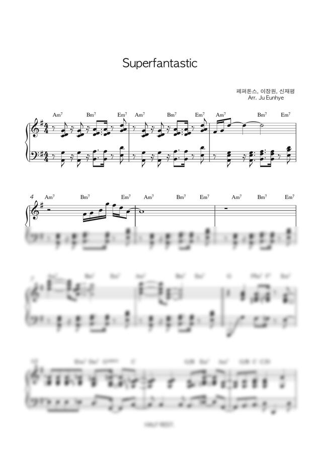 * 리듬이 상당히 복잡하고 코드변화도 많기 때문에 악보 자체가 어렵습니다.