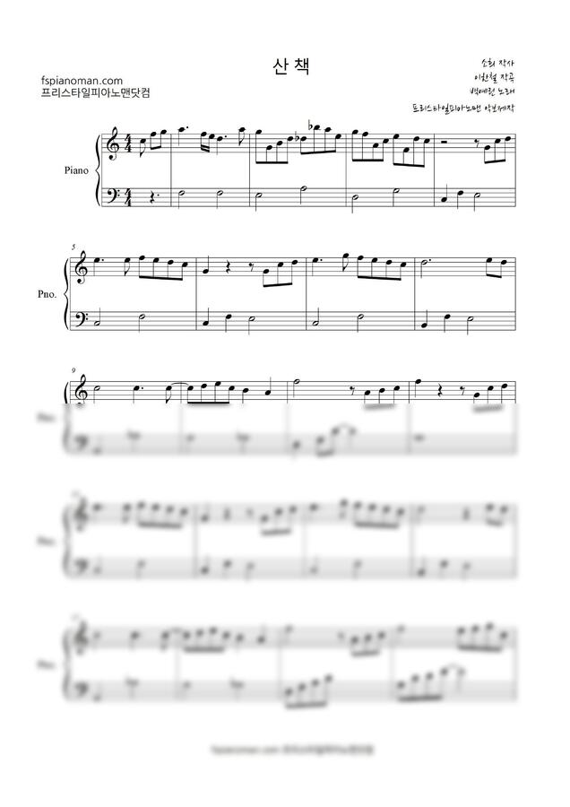 백예린 - 산책 (다장조 쉬운 악보) by 프리스타일피아노맨닷컴1