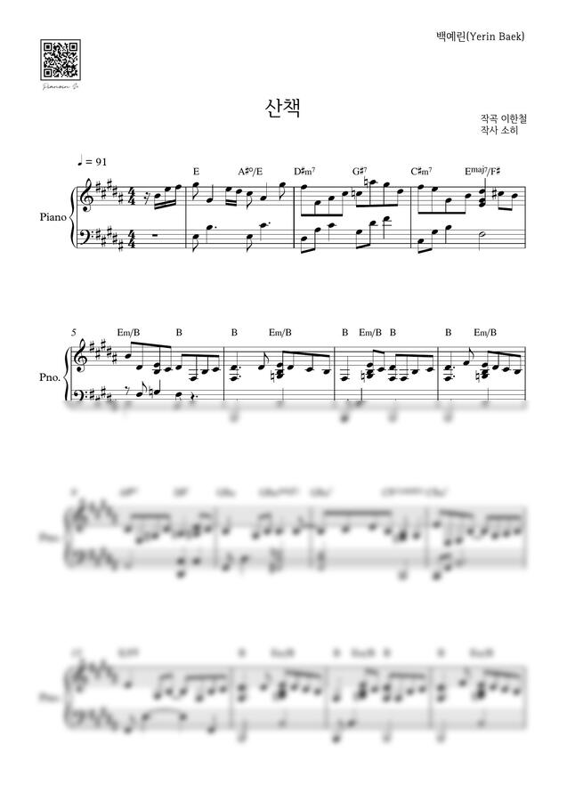 백예린 - 산책 by 피아노인유