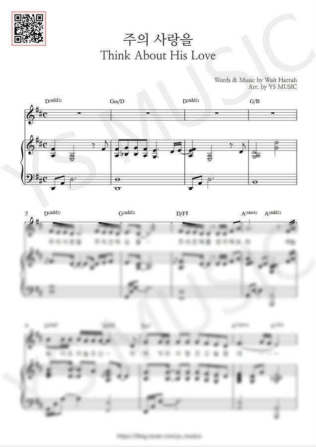 주의 사랑을 주의 선하심을 (Think About His Love) 피아노 반주입니다.