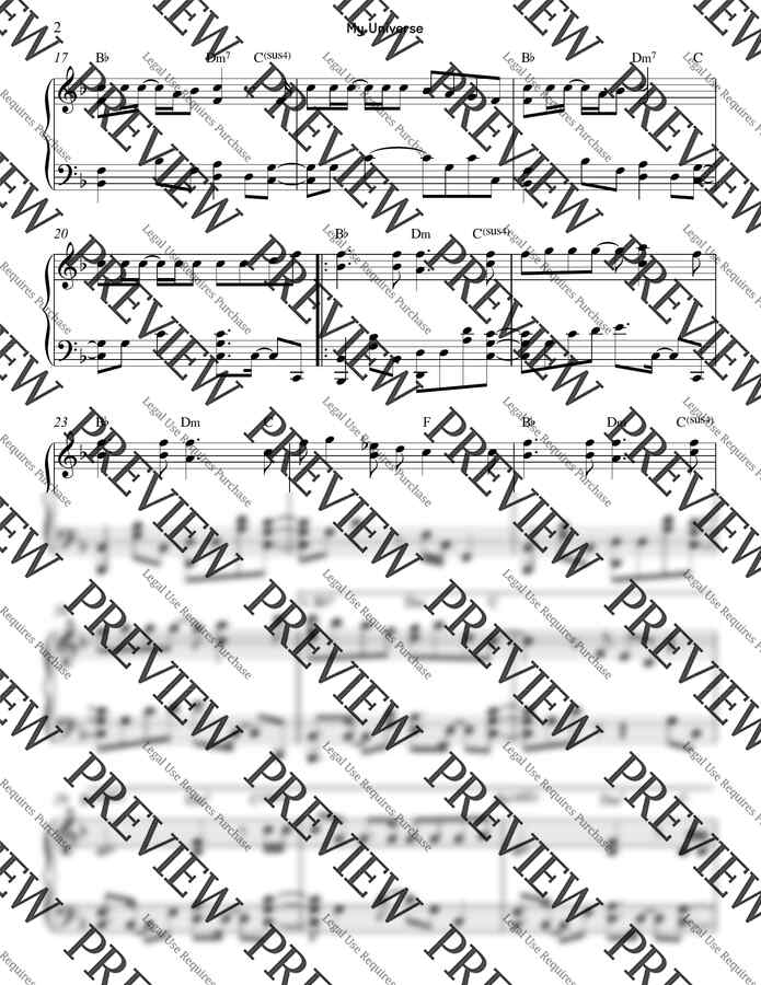 이번악보는 Coldplay 와 방탄소년단의 콜라보 곡인 My Universe 입니다~