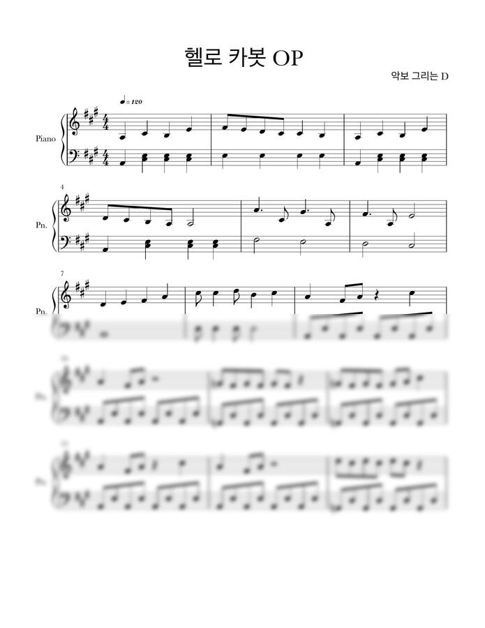 헬로카봇 OST - 비밀친구 헬로카봇 (원키, 다장조) by 악보그리는D