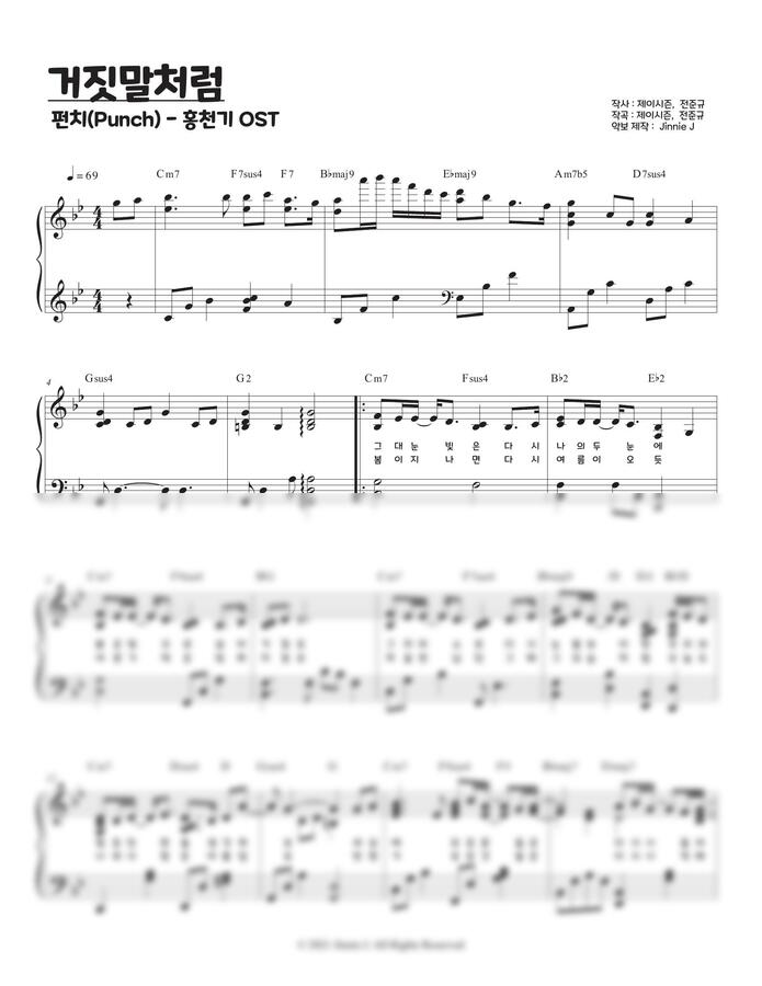 홍천기OST - 펀치 "거짓말처럼" 악보 올립니다.