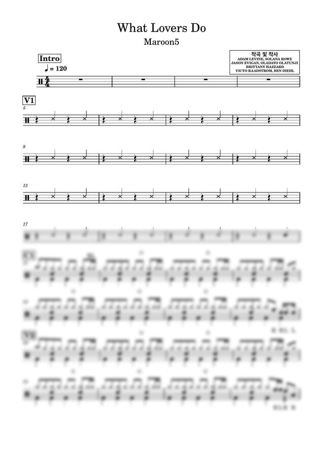 Maroon5 - What Lovers Do (드럼악보) by Drummer KWI