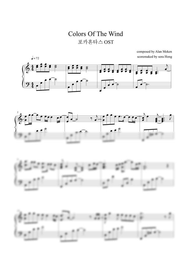 ‘포카혼타스 OST-Color Of The Wind’ 피아노연주 및 악보입니다~
