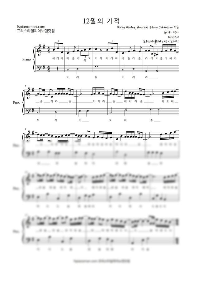 EXO - 12월의 기적 (계이름 악보) by 프리스타일피아노맨닷컴