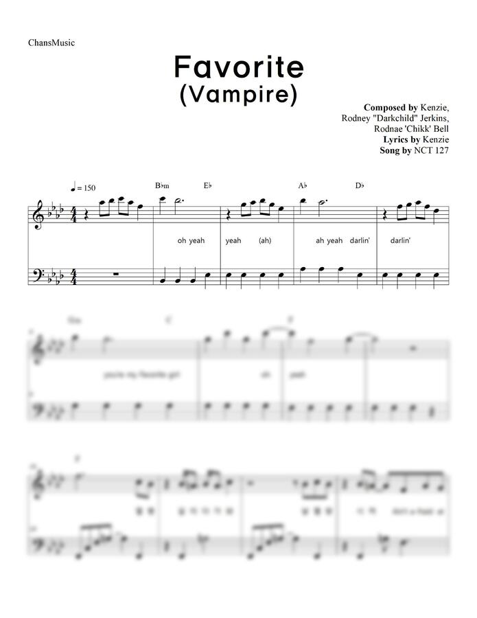 NCT 127 - Favorite (Vampire) (가사, 쉬운 악보) by 찬스뮤직
