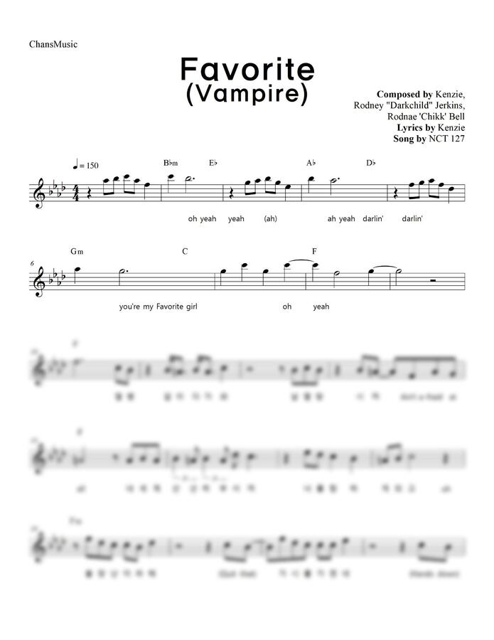 NCT 127 - Favorite (Vampire) (멜로디 악보) by 찬스뮤직 1p 미리보기